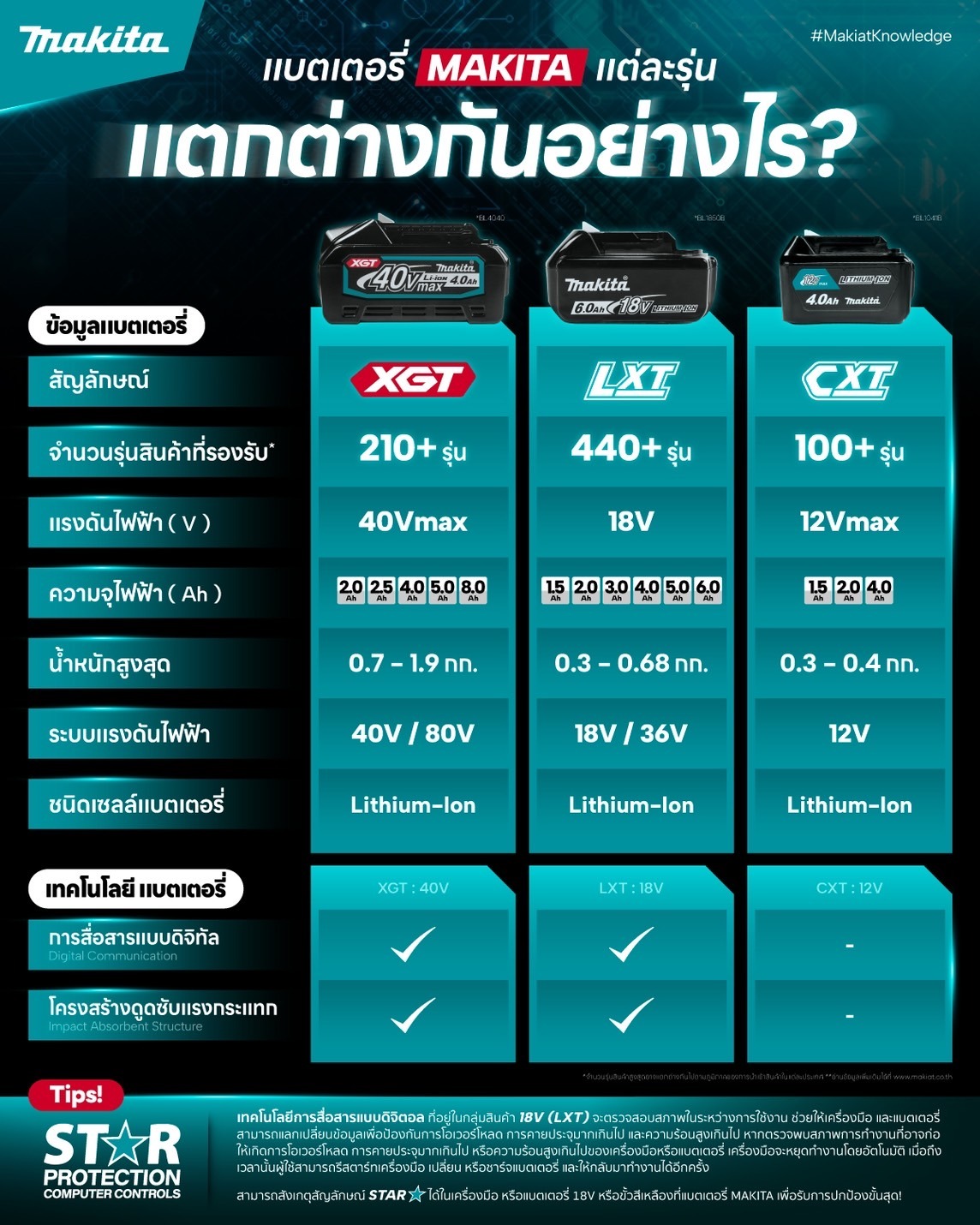 *สามารถสังเกตุสัญลักษณ์ STAR ได้ในเครื่องมือ หรือแบตเตอรี่ 18V หรือขั้วสีเหลืองที่แบตเตอรี่ Makita เพื่อรับการป้องกันขั้นสุด!